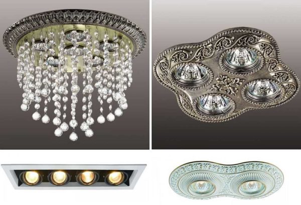 По конструкции можно выбрать следующие виды точечных светильников: