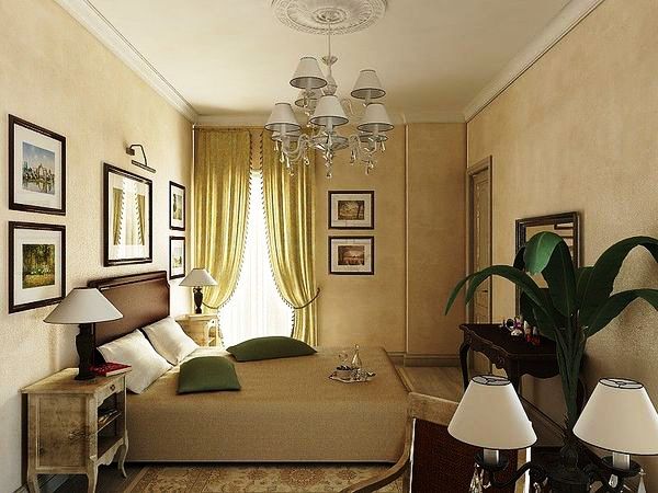 Классическое оформление интерьера предполагает строгую симметричность линий, сдержанную красоту мебельной обстановки в целом. Отличительные признаки этого дизайнерского направления – удобная эмалированная мебель с выгнутыми резными ножками, высокое изголовье кровати, изящная люстра.