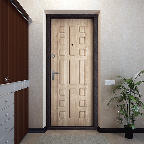 Еще надо помнить, что отжим — главный враг входных дверей и сейфов. А здесь тело полотна двери утоплено в коробку (не накладное), это препятствует вскрытию механическими инструментами и отжиму.
