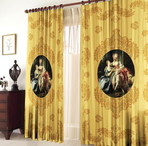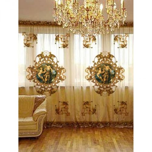 Гардины «Мадонна» на фото, производятся в белой, темно-зеленой, золотистой расцветке. Изделие декорировано чувственным изображением молодой Мадонны и ребенка, расположенное на однотонном фоне. Данная модель создает в помещении неповторимую, роскошную атмосферу. Изделие производится из мягкого полотна габардина в размере 1,5м*2,7м.
