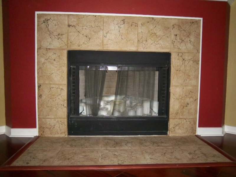 - Подготовить поверхность камина: