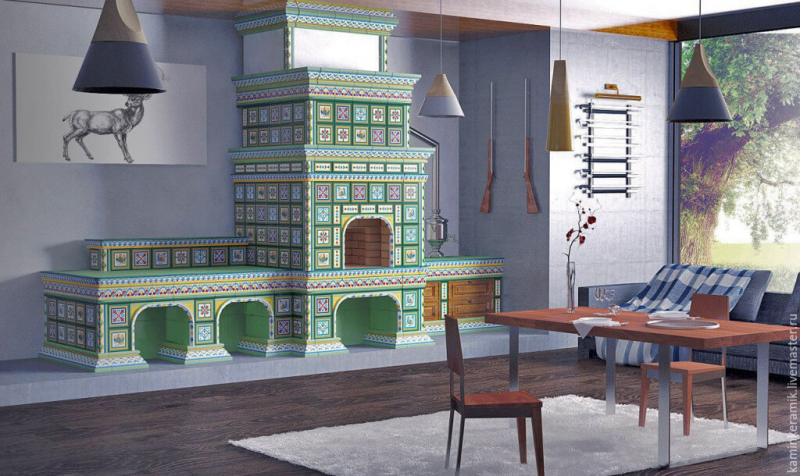 Этот материал используется на протяжении долгого времени. Керамическая плитка является упрощенным вариантом более сложной отделки с использованием изразцов. Но она позволяет получить интересный и привлекательный вид такого сооружения как камин.