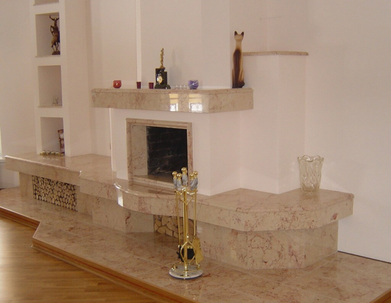 Камень может смело использоваться как термостойкий и негорючий материал. Но и конструкцию такую невозможно будет поместить без дополнительного фундамента на какой-либо этаж, потому что он габаритный и весьма тяжелый.