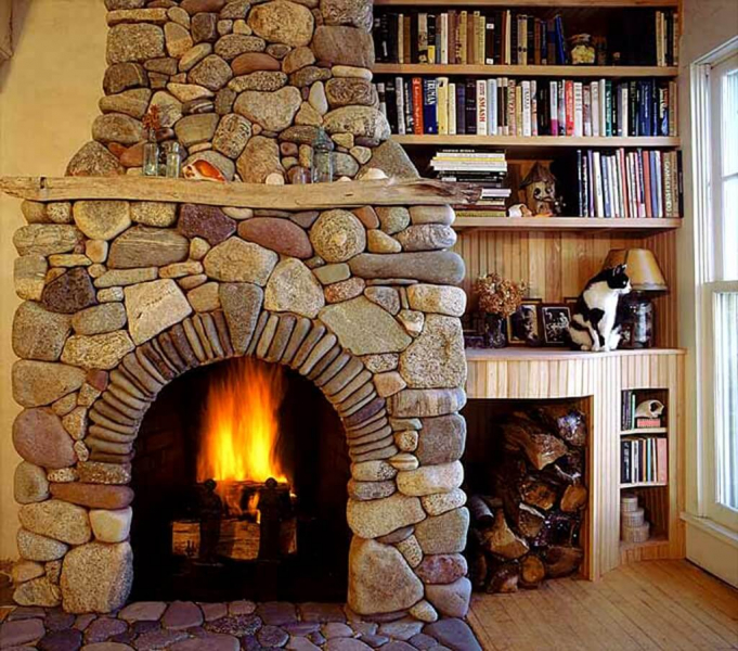 Варианты отделки камина камнем: фото