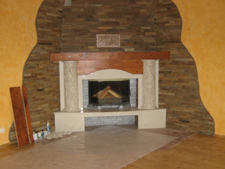 Таким образом получается прочное соединение, обеспечивающее качественную отделку поверхности камина.