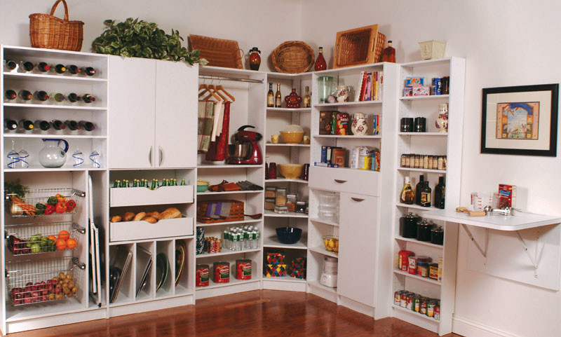Если вы любите запасать что-либо впрок, то без кладовой не обойтись. С этой ролью отлично справится большой кухонный шкаф. Дополнительные полочки на дверцах способны увеличить его вместительность. Для установки шкафа-кладовой вполне хватит небольшой угловой ниши.