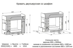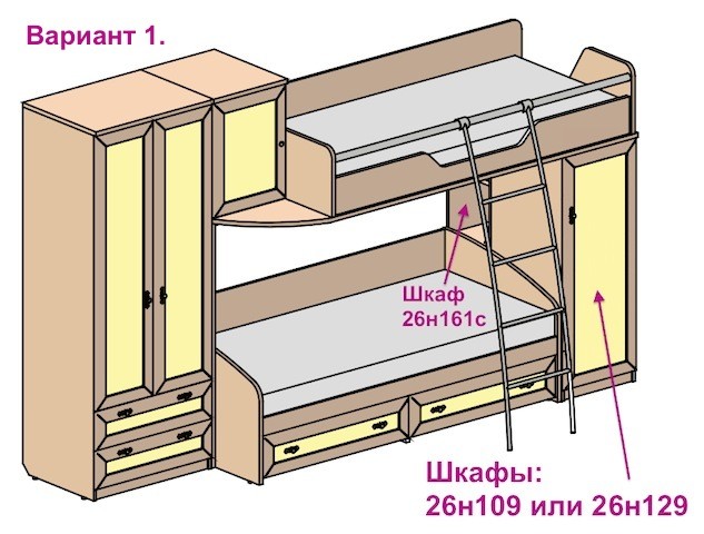 Схема двухъярусной кровати со шкафом.