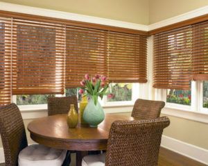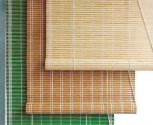 Жалюзи. Это альтернатива пластиковым изделиям, которые содержат бамбуковые полоски шириной до 5 см. Управляются они таким же методом, как и пластиковые. Если они производились из внутренней части бамбука, значит цвет готового изделия будет светло-бежевый, а если из наружной части растения, то темно-коричневыми.