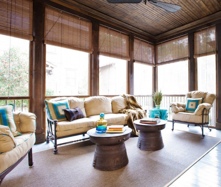- Сквозь бамбуковые шторы в помещение поступает свежий воздух.