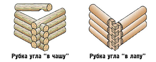 Виды рубки «в чашу» и «в лапу»