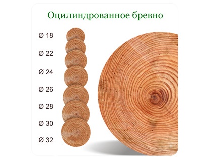 Оцилиндрованные, или калиброванные бревна делают только в условиях производства: диаметр бревна выравнивается по всей длине и для защиты от разрушения и гниения древесина подвергается принудительной пропитке антисептиком, а срезы окрашиваются специальным составом. Оцилиндрованное бревно имеет продольный паз для укладки, форма его бывает различной – лунной, в виде полумесяца, или финской – с более сложной формой, обеспечивающей плотное прилегание. Диаметр оцилиндрованного бревна может быть от 180 до 320 мм, чем толще бревно, тем теплее будет баня. Сборка сруба из оцилиндрованного бревна производится быстро, за несколько дней. Можно также заказать готовый сруб.