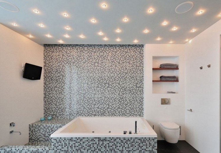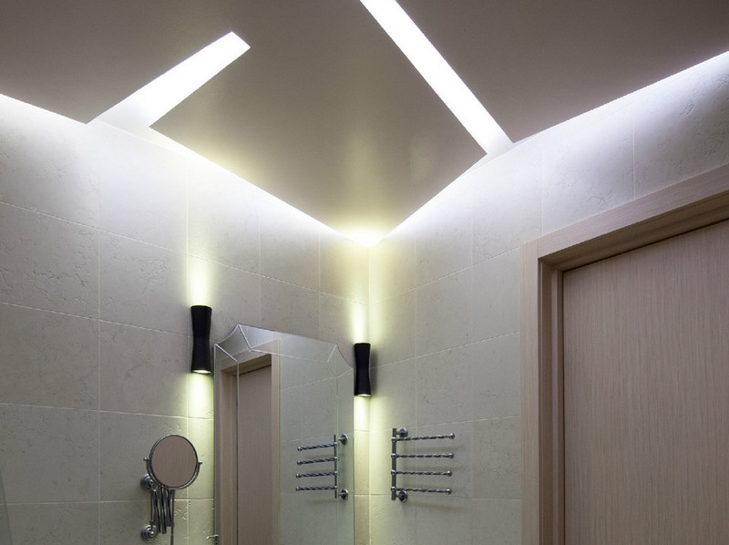 Какие выбрать светильники для ванной с натяжным или гипсокартонным потолком: бра, встроенные, точечные или люминесцентные?
