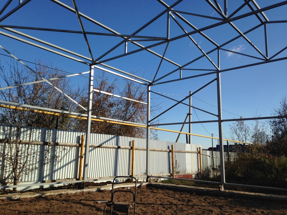 Привет а ферму из какого профиля варил и какой толщиной стенки? Расстояние между столбами 100х100 какое?
