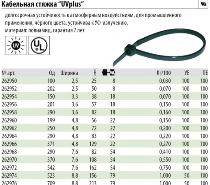 Кабельная стяжка UVplus