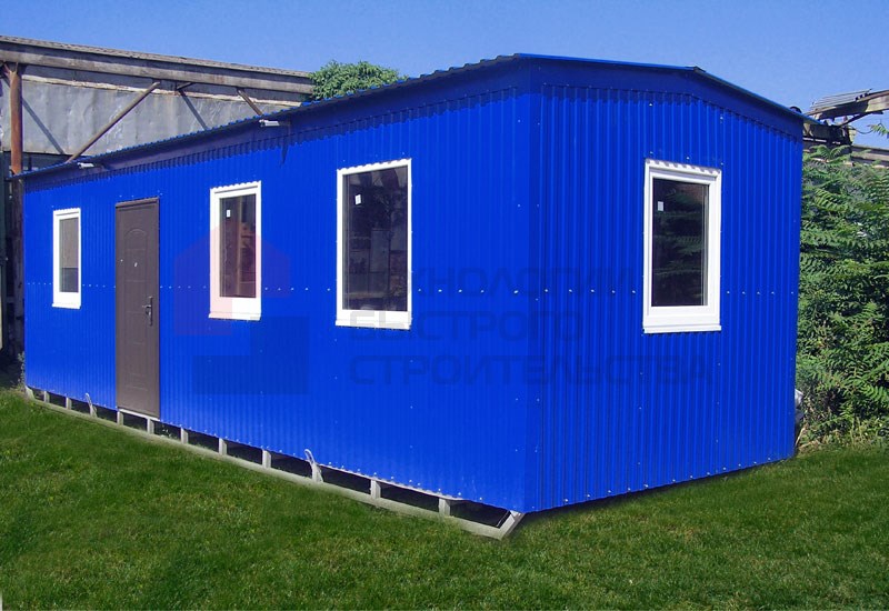 Помещение для временного пребывания. Используется для размещения рабочих в местах длительных строек, нефтедобычи, дачных участках и пр. Материал изготовления: оцинкованный гофрированный лист 0,45 мм; сталь 1,5 мм.