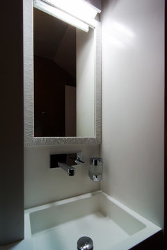 - Настенный умывальник. Закрепляется на стене с помощью анкеров или закладных элементов. Он не требует наличия предметов интерьера и подчеркивает минималистический стиль в интерьере.