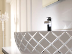 | Стекло | Раковины для ванной из стекла эффектно смотрятся в помещении и являются достаточно функциональными. Для их изготовления используется закаленный материал, который отличается повышенной прочностью. Прозрачная раковина быстро загрязняется, поэтому ее нужно тщательно мыть и натирать (обычно после каждого использования). |