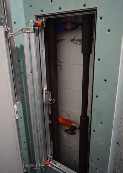 На фото: зашивая трубы в короб, не забывайте оставлять доступ к коммуникациям. Чем легче вам будет добраться до труб, тем лучше