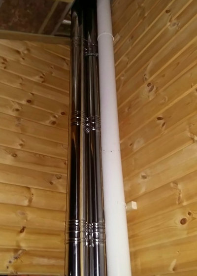 Многие профессионалы рекомендуют устанавливать трубу наоборот — сначала закрепит сверху, а уже потом вставлять в тройник снизу.