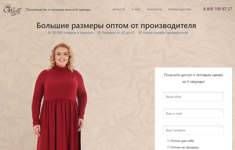 Интернет-магазин женской одежды больших размеров Wisell