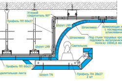 Установка подшивного и подвесного потолка является самым трудоемким методом. Процесс отделки потолка начинается с установки каркаса. Для этого используют фурнитуру для ГКЛ.