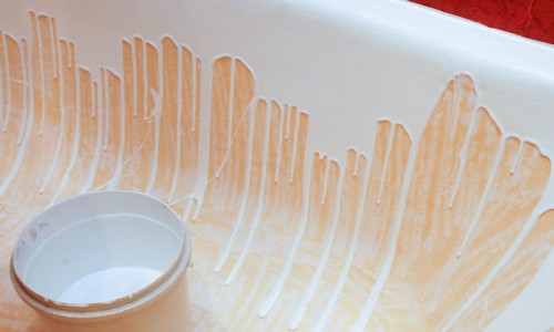 - На дне сантехники не должна образоваться «лужа» – излишки эмали надо убрать.