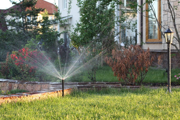 Статические спринклеры помогут полить участок газона, который находится вблизи здания, вдоль дорожки или ограждений. Роторные и импульсные устанавливаются в центре газона и орошают большую область. Чтобы газон был полит равномерно, можно установить сразу несколько разных распылителей и подключить к каждому из них регулятор давления.