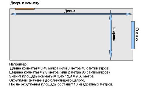 Схема расчёта площади комнаты для поклейки обоев.