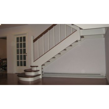 Подведем итог: Поворотная лестница с забежными ступенями экономит место и делает более комфортным шаг при условии ограниченного пространства под лестницу.