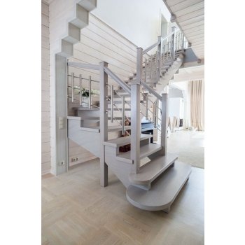 Фото лестницы двух маршевой на 180 ° с 6 - забежными ступенями