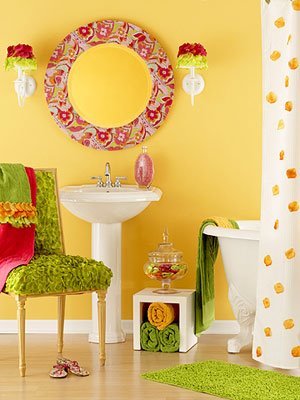 Ванная. В замкнутом пространстве желтый может быть опасен – есть вероятность, что закружится голова и вас будет тошнить. Но если ограничитесь только аксессуарами, то в ванной станет теплее, а по утрам глазу будет за что зацепиться для получения порции бодрости духа на последующий день.