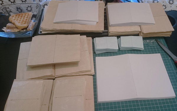 Для одного блокнота я делаю примерно 15 таких тетрадей (получается 90 листов в блоке)