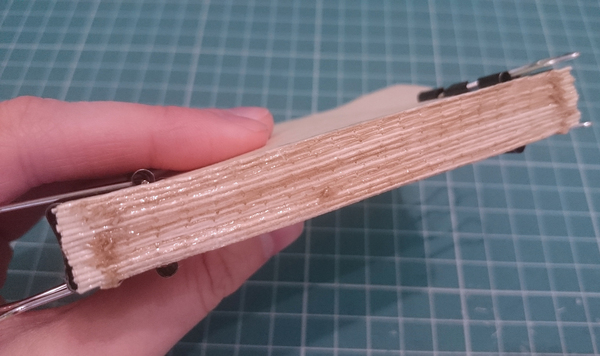 А теперь берем оставшиеся зажимы и закрепляем их по всей длине корешка. И оставляем в таком виде на сутки. Нам нужно, чтобы наши тетрадки спрессовались, слежались.