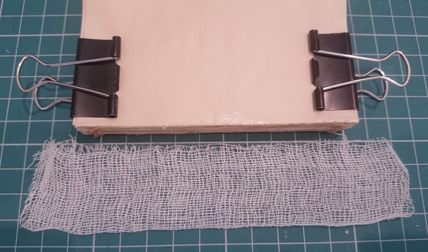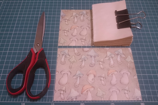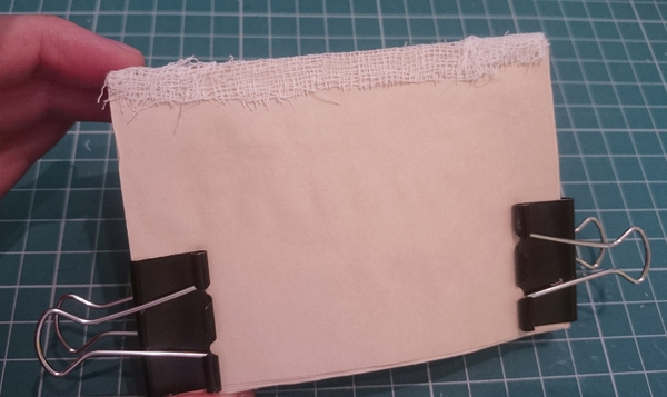 Далее, нам нужно разметить наш будущий переплет. Для этого выравниваем наши листики, аккуратно складываем в стопочку и закрепляем по бокам зажимами. Для того, чтобы от зажимов не осталось следов, подкладываем под них картон.