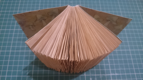Веерный переплет очень похож на обычный переплет скрепками, только в данном случае роль скрепок играет нить, с помощью которой сшиваются заготовленные и сложенные вдвое листы бумаги.