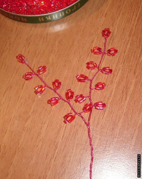 Теперь надо сделать таких веток порядка 100 штук – именно при таком количестве дерево из бисера будет смотреться достаточно пышно.