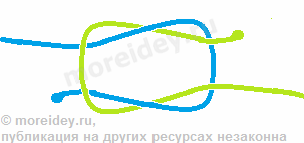Здесь сложность в том, что резинка очень эластичная, и если ее просто завязать на два узелка, то в самый неподходящий момент она может развязаться, а браслет – рассыпаться. Поэтому крепче держится и аккуратнее смотрится вот такой узел: на обоих концах резинки завязываем узлы, крепко их затягиваем и связываем концы узелками друг с другом так, как на рисунке.