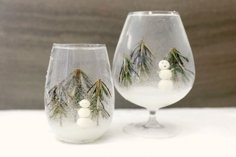 Новогодний декор внутри бокалов, стаканов и фужеров