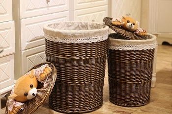 Плетёные корзины, как правило, имеют в своей конструкции чехол, что позволяет снизить вероятность попадания пыли к белью во время его хранения.