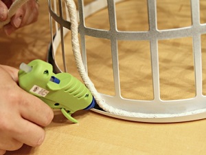 В результате пластиковая форма снаружи целиком покрыта веревкой, с внутренней стороны – только верхняя часть.