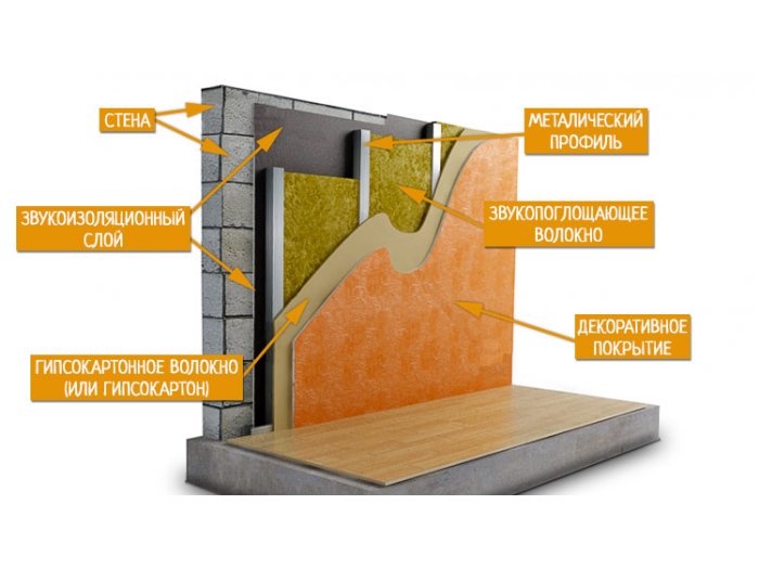 – В случае наличия и низких частот в раздражающем звучании, работы по защите от него будут включать еще и устройство плавающей стяжки с использованием специальной минеральной ваты.