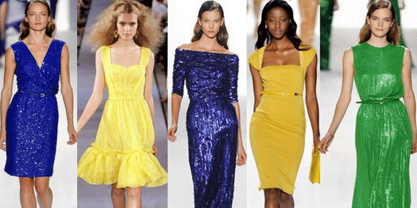 Если платье цветное и вы решили дополнить его украшением. То поступайте следующим образом: найдите цвет на платье, которого меньше всего, и добавьте этот цвет с помощью бижутерии. Сама бижутерия, конечно же, должна содержать в себе только один цвет.