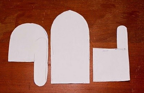 Для начала нам нужно сделать выкройки. Их можно сделать по удобным варежкам или по способу выше