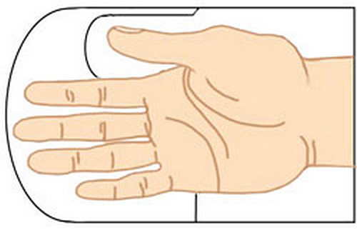 - Расстояние от кончиков пальцев до нижней точки большого пальца.
