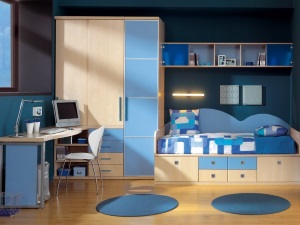 | Кровать или диван | Для подростков важно спальное место, потому как во сне ребенок набирается сил, восстанавливает запасы бодрости на день. Чтобы кровать была удобной, приобретите ортопедический матрас – он поможет позвоночнику принять правильное положение. Если места мало, стоит обратить внимание на раскладной диван, который под основной частью имеет вместительные ящики для хранения постельного белья. | Кровать устанавливается в спальном уголке подростка. Спальная мебель для двух подростков должна быть размещена в непосредственной удаленности друг от друга – это обеспечит комфорт двоим детям в ночное время. Если мебель выбирается в маленькую комнату, отдайте предпочтение двухъярусной кровати, однако не забудьте учесть высоту потолков. |