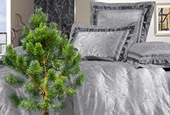 Это очень гладкая, красивая, изысканная и плотная ткань, отличающаяся рельефным рисунком за счет запутанного, сложного переплетения разных по свойствам нитей (к примеру, хлопковых и шелковых). Жаккардовое постельное белье выглядит дорого и нарядно, отлично впитывает влагу.
