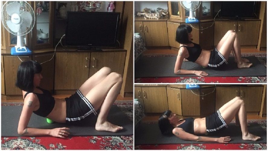 Изначальная позиция – локти на полу, ноги согнуты в коленях, стопы крепко упираются в пол. Нужно выбрать для себя первую точку. Лучше всего, если это будет грудной отдел. Почти все практикующие самомассаж мячами делятся примерно одинаковым опытом: «При нажатии на грудной отдел была адская боль пару секунд в области груди. Было страшно, а потом наступило удивительное облегчение, словно пропал из туловища камень, который там годами был». Высока вероятность, что при первом сеанса самомассажа будет такой же эффект.