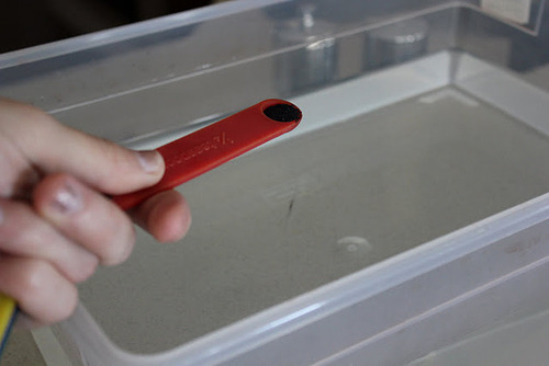 Наберите в емкость холодную воду. Поэкспериментируйте с концентрацией красителя. По-тихоньку добавляйте его в воду и смотрите на цвет, который будет получаться. Как только Вас удовлетворит результат, остановитесь. Обратите внимание, что ткань в мокром виде будет казаться на пару оттенков темнее, чем будет выглядеть сухая.