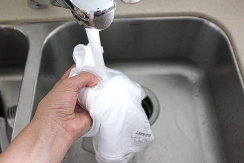Сода очень едкая, поэтому работать нужно в резиновых перчатках.
