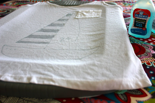 Теперь нам нужно наклеить наш трафарет на футболку.